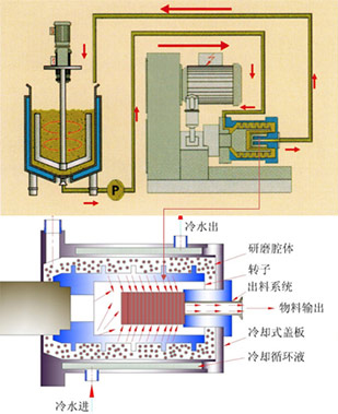 砂磨腔內(nèi)有專門設(shè)計(jì)的冷卻結(jié)構(gòu)