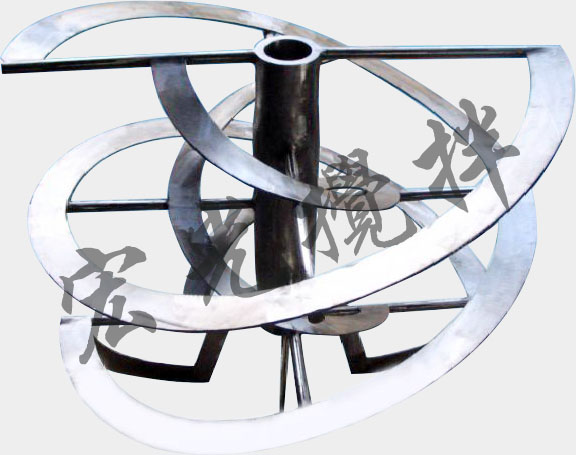 螺帶的外徑與螺距相等,用于攪拌高粘度液體(200~500Pa·s)及擬塑性流體,通常在層流狀態(tài)下操作。
